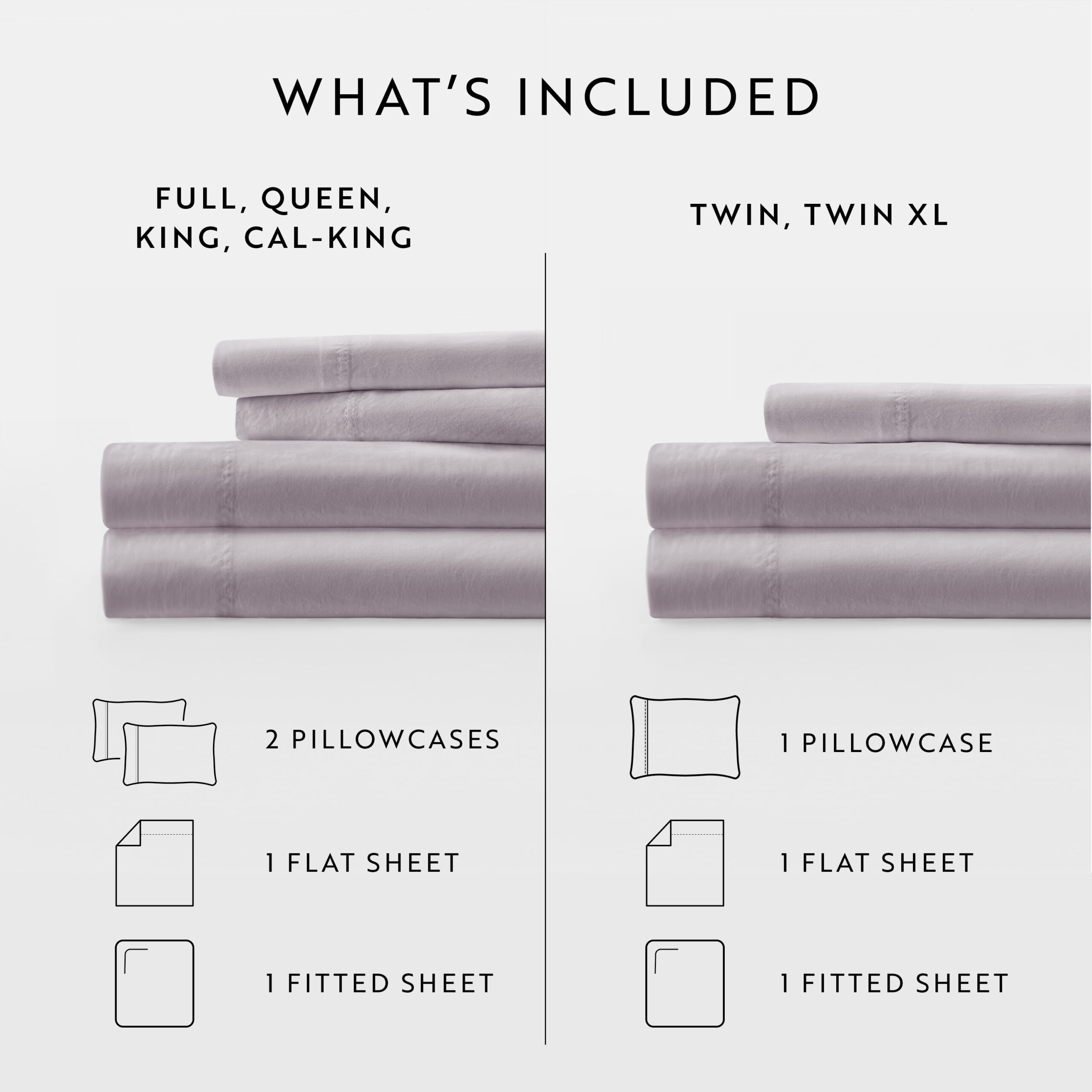 - FULL: 1 flat sheet (81″ x 96″), 1 fitted sheet (54″ x 75″ x 16″) and 2 pillowcases (20″ x 30″)