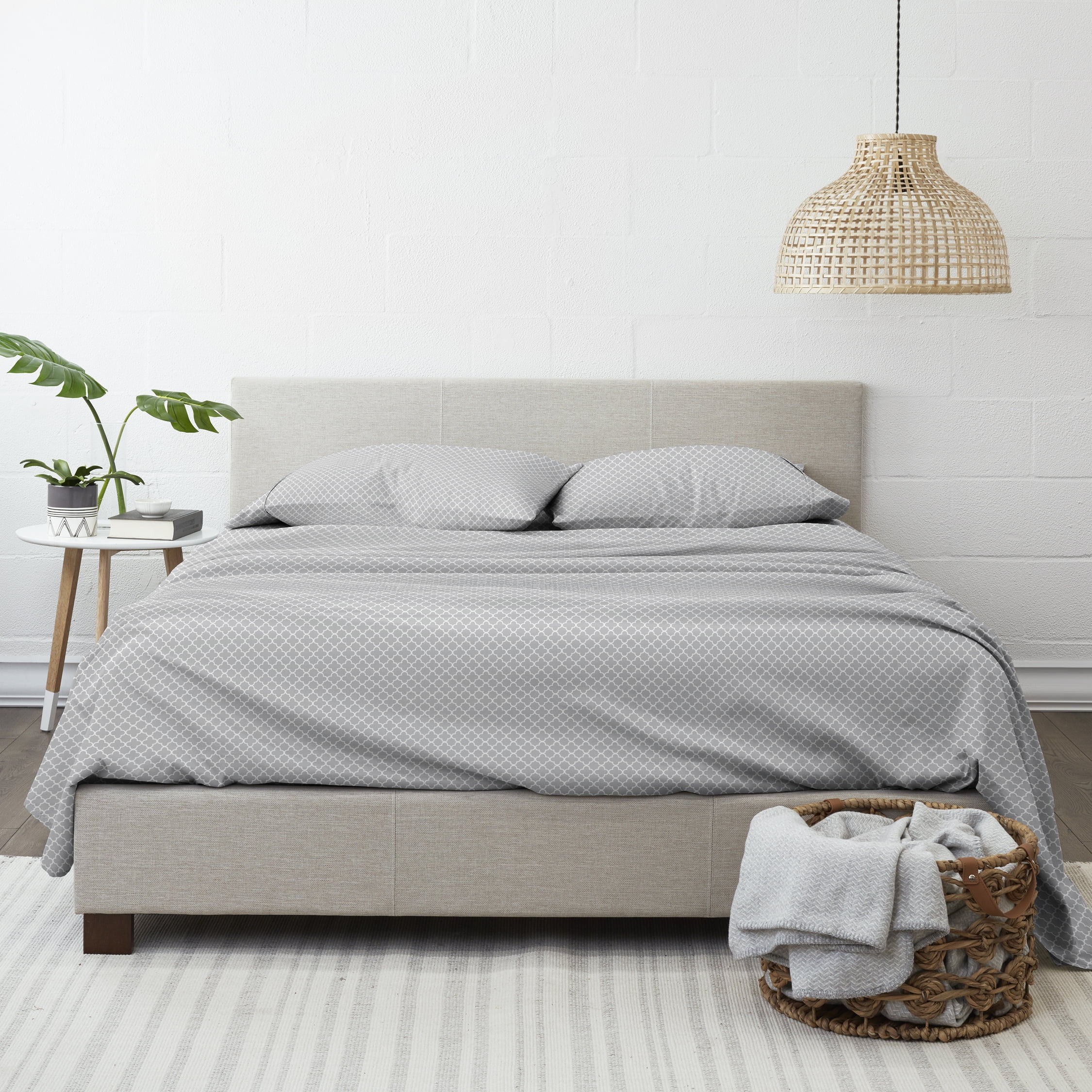 - This double-brushed patterned microfiber sheet set is super soft to the touch and wrinkle-resistant. With premium yarns that are twice as durable as cotton, these sheets are at less risk of rips and wear. These sheets are ideal for sensitive skin and those with allergies. Available in a variety of unique designer prints and patterns, including florals, geometrics, and stripes, making it the perfect new addition to your room!