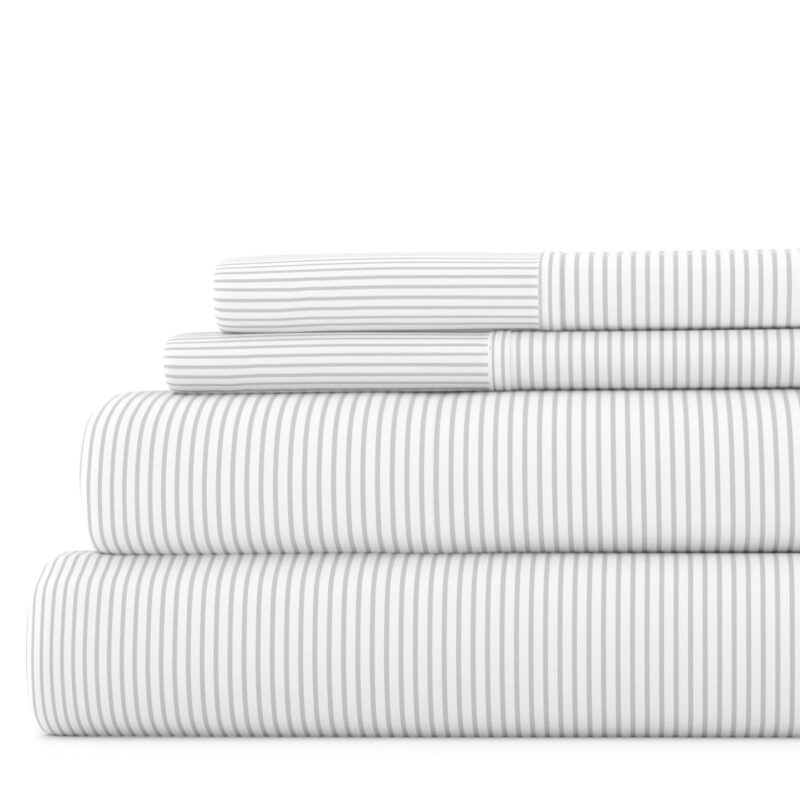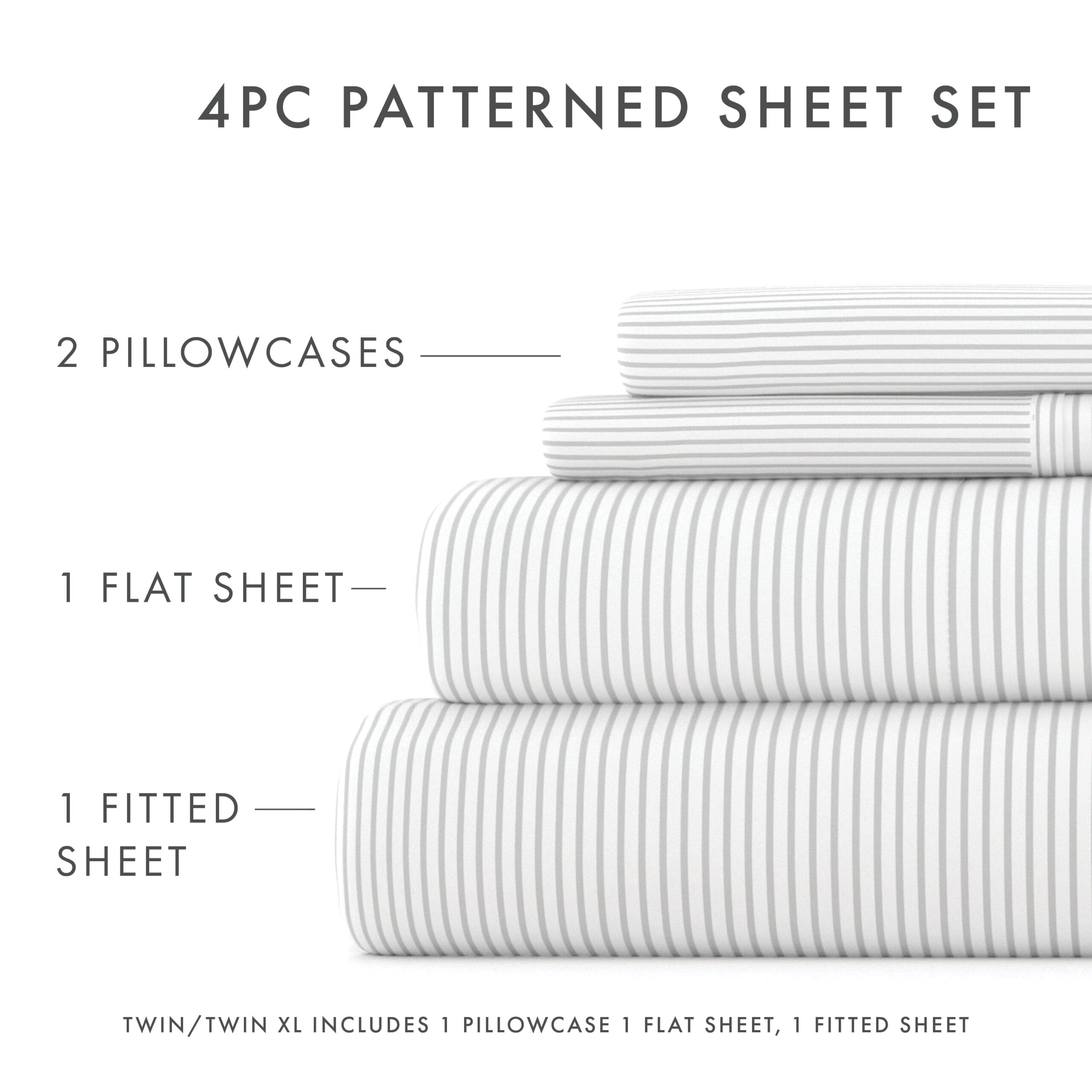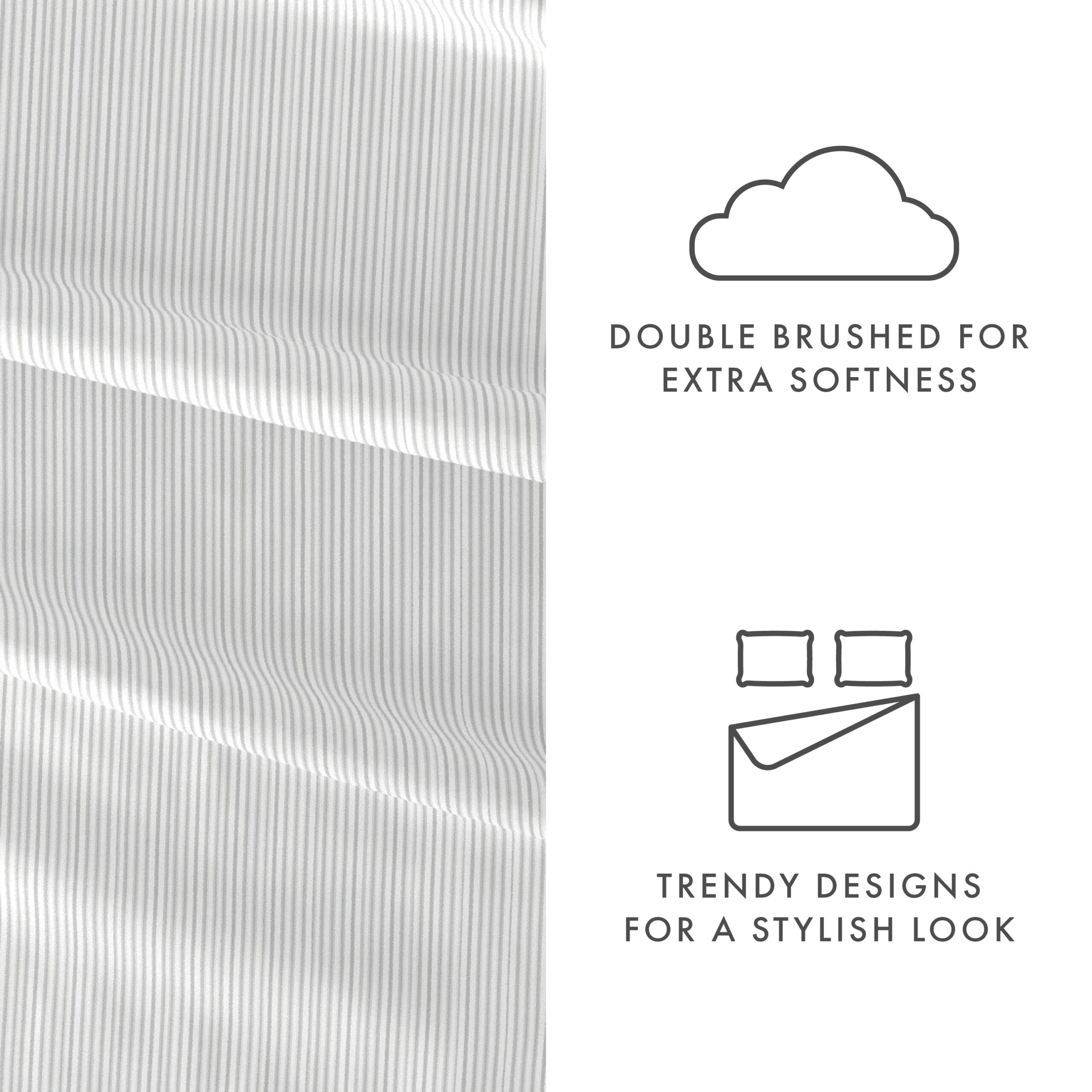- This double-brushed patterned microfiber sheet set is super soft to the touch and wrinkle-resistant. With premium yarns that are twice as durable as cotton, these sheets are at less risk of rips and wear. These sheets are ideal for sensitive skin and those with allergies. Available in a variety of unique designer prints and patterns, including florals, geometrics, and stripes, making it the perfect new addition to your room!