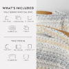 - QUEEN: 90″ x 94″ Comforter, 20″ x 26″ Pillow Shams with 2″ flange 1 flat sheet (90″ x 102″), 1 fitted sheet (60″ x 80″ x 14″) and 2 pillowcases (20″ x 30″)