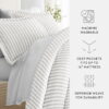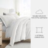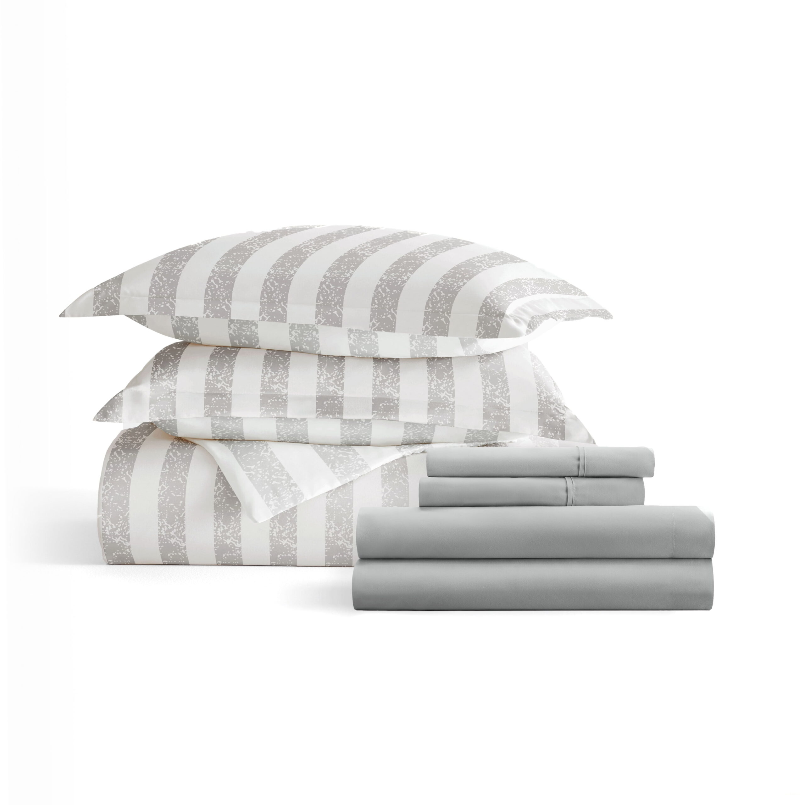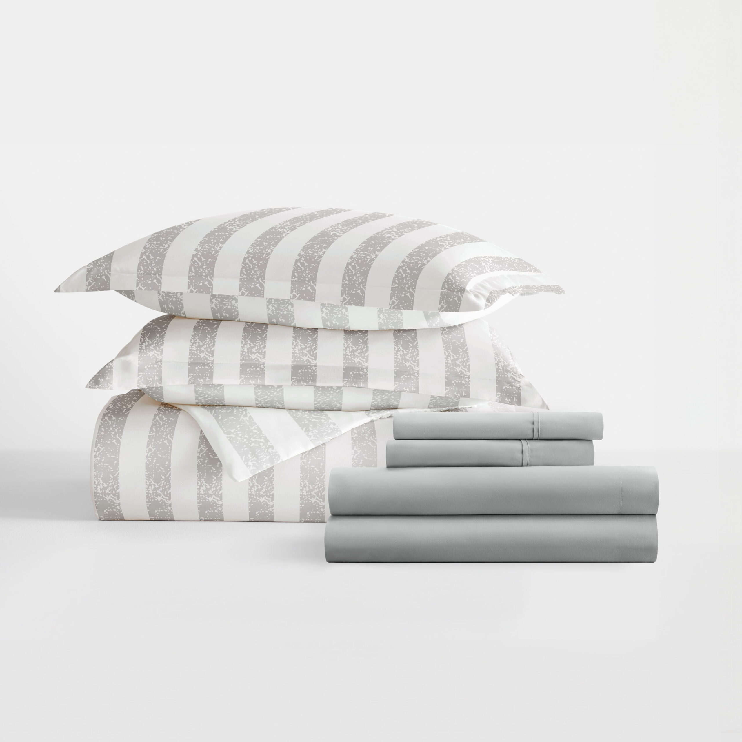 - This complete set features a vibrant patterned duvet cover that adds a touch of modern elegance to any bedroom. Beneath the duvet, a plush white comforter provides luxurious warmth and comfort, ideal for all seasons. Completing the ensemble is a soft, solid sheet set made from premium microfiber, ensuring ultimate softness and durability. Perfect for refreshing your bedroom decor, this bedding bundle offers a chic, cohesive look while promising a night of restful sleep.