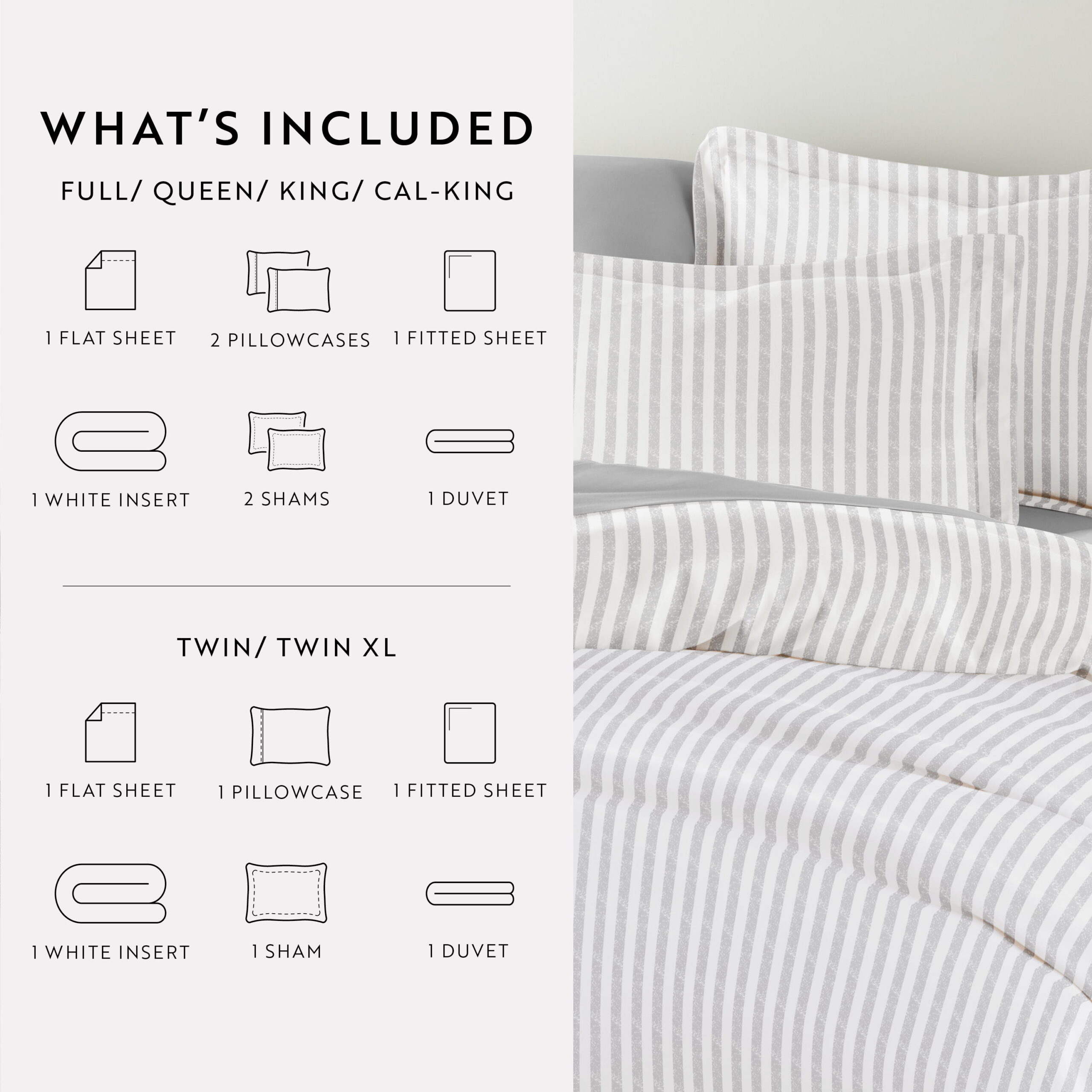 Noble Linens 8 Piece Patterned Duvet Bedding Bundle, Puffed Rugged Stripes Light Gray, Queen