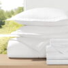 - Give your bed a refreshing new look and feel with this BED-IN-A-BAG set. It has everything you need from bed sheets and pillow shams to a comforter and bedskirt for a cohesive ensemble. The crisp white sheets are perfectly matched to variety of colors for you to choose from and each piece is double brushed for an ultra soft and cozy texture. Our premium yarns are twice as durable as cotton, wrinkle resistant and a perfect choice for those with sensitive skin.