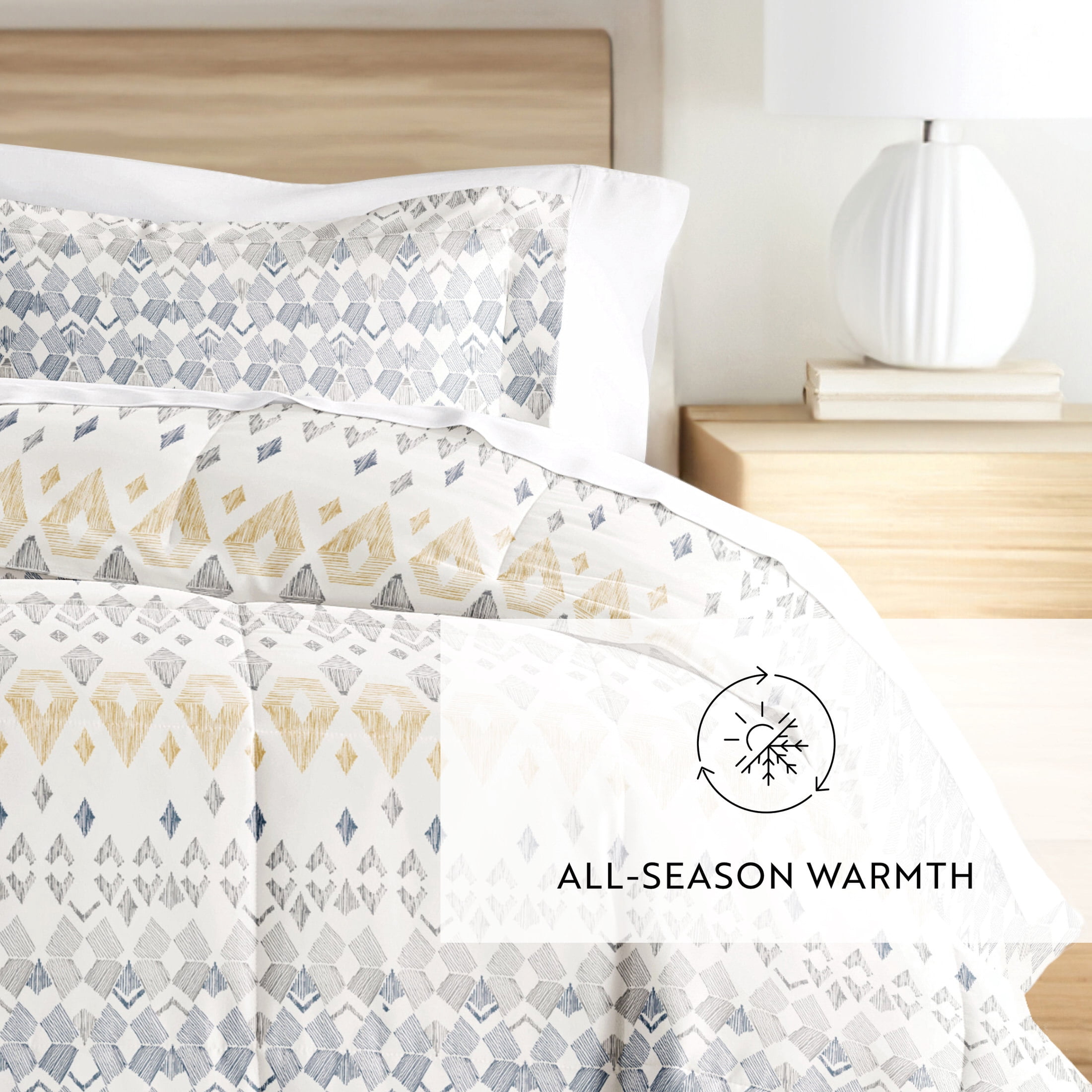 Give your bedding a brand new look and feel with this lightweight, all season patterned comforter set. Presenting a down alternative quality, its incredible softness makes it the perfect comforter to keep you cozy all year round. Our premium yarns are twice as durable than cotton, which means less risk of rips and wear. The sewn through box stitching prevents the fibers from shifting.