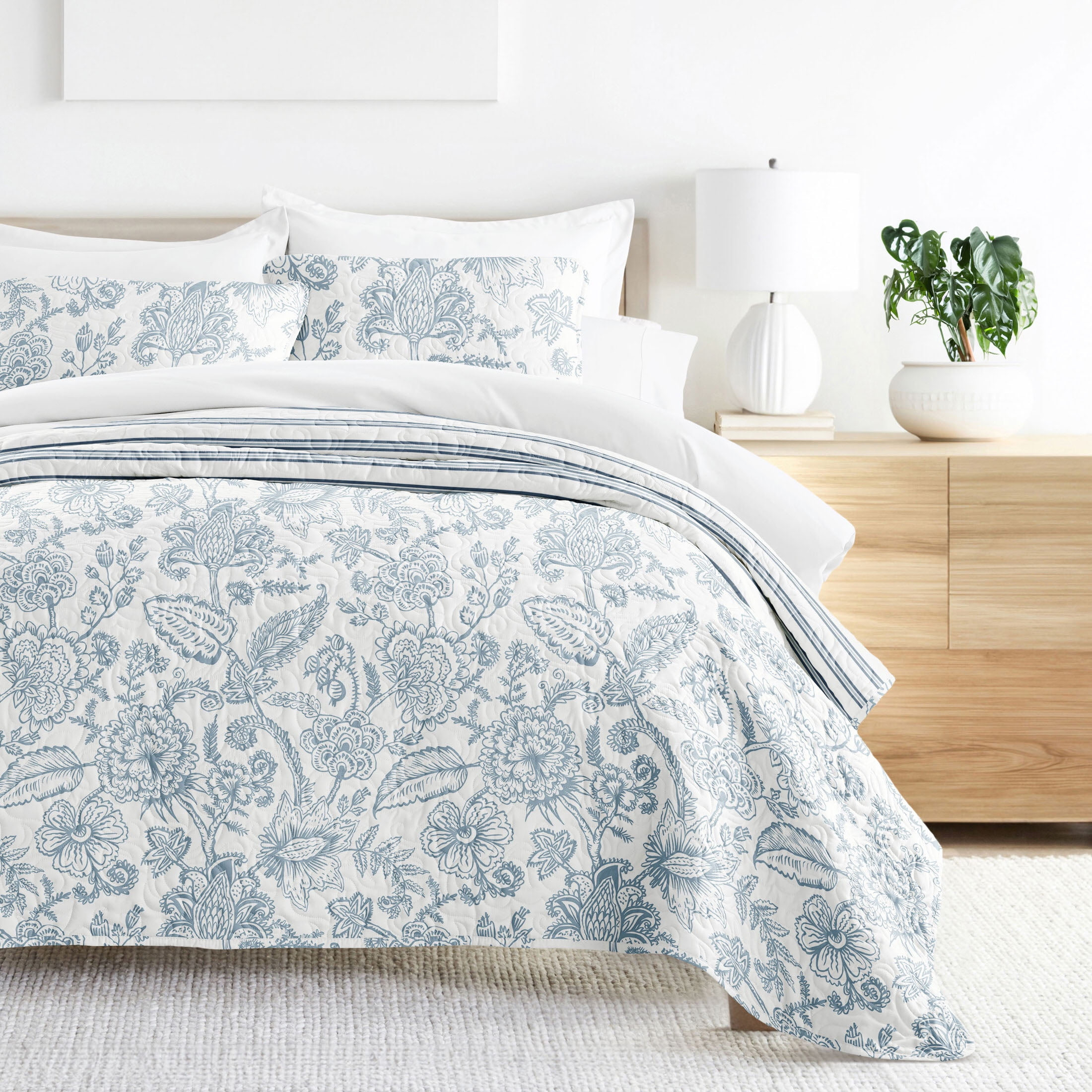 Give your room a comfy new addition with this ultra soft quilted coverlet set with shams! Generously filled it with artificial down, and each piece is double brushed to give it that super soft, cozy feel. The beautiful, subtle quilted stitchings add dimension and a gorgeous touch to any bedroom. Spun from our premium yarns, this set is twice as strong as cotton, wrinkle resistant and a perfect option for those with allergies or sensitive skin. Elegant stitched designs elevate the look and feel of any bedroom. The sets are available in a variety of gorgeous colors and styles, pefect for a bed refresh!