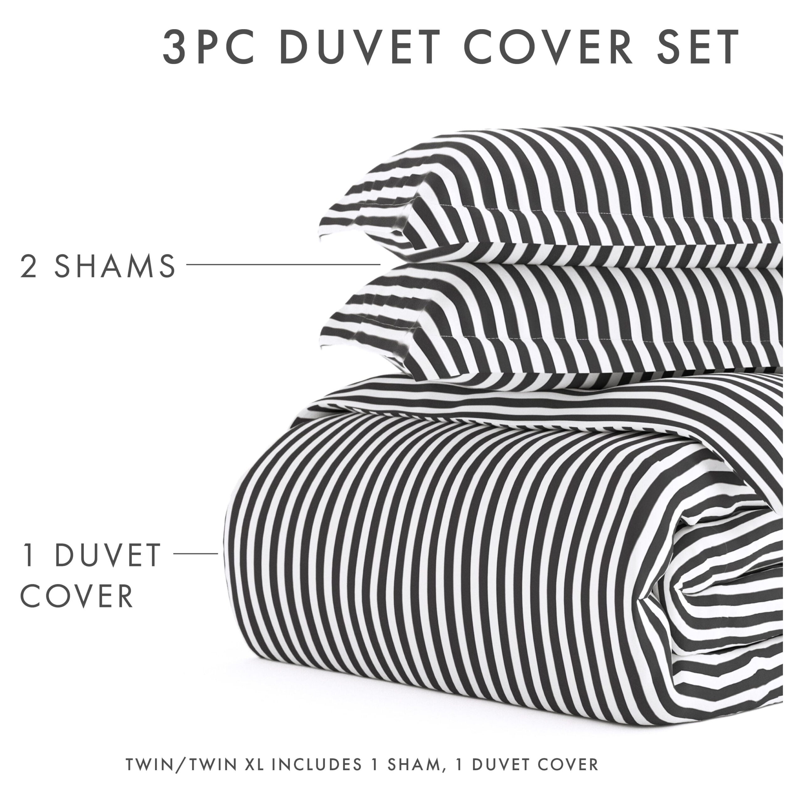- TWIN/TWINXL: 70″ x 90″ Duvet Cover, 20″ x 26″ Pillow Sham with 2″ flange