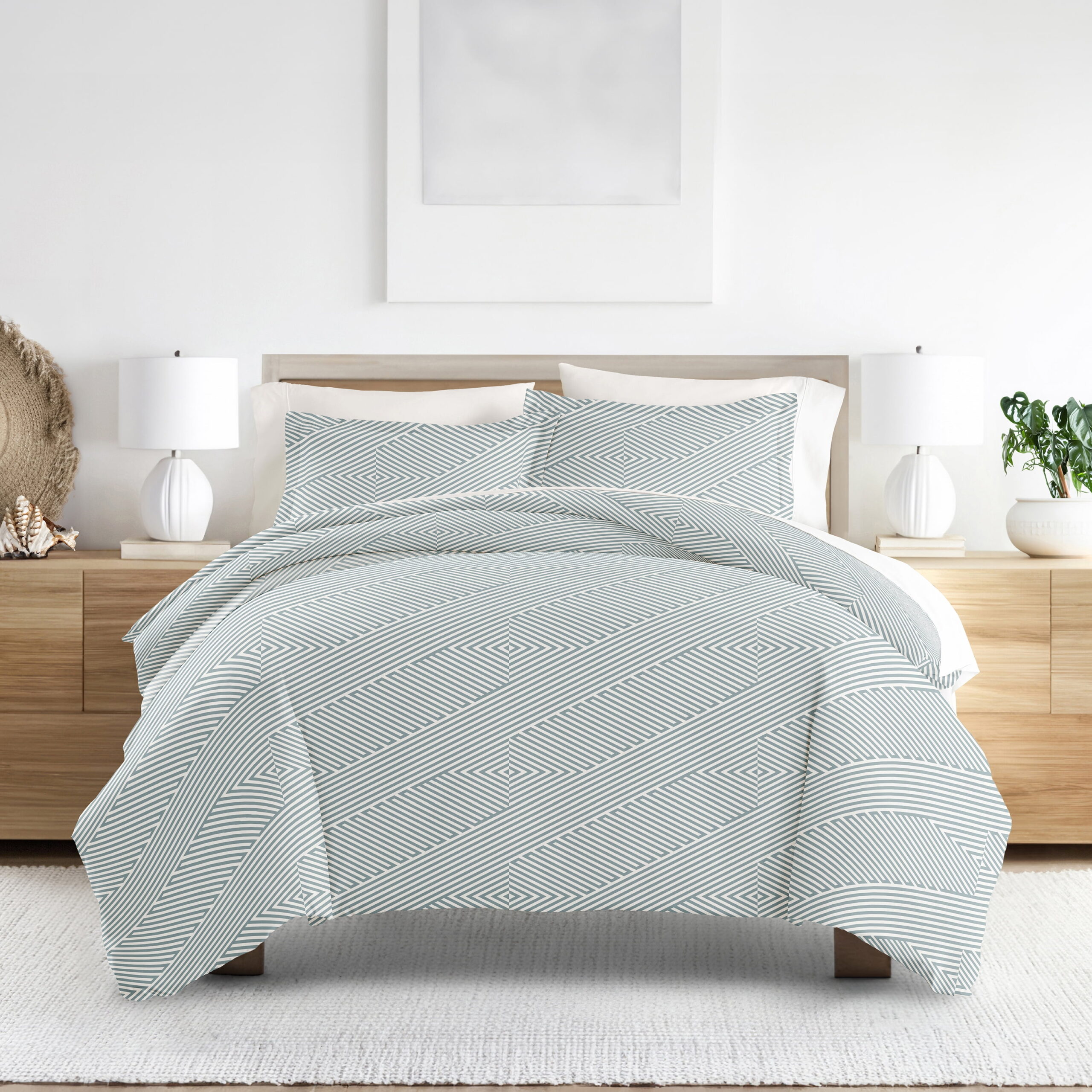 Protect your comforter and give your bedroom a refreshing new look with Noble Linens beautiful patterned 3-Piece Duvet Cover Set. Made with imported, high-quality 95 GSM microfiber, this classic piece is super soft, smooth and twice as durable as cotton. Included in the 3-piece set are matching pillow shams along with the duvet cover (duvet insert and pillows are not included).