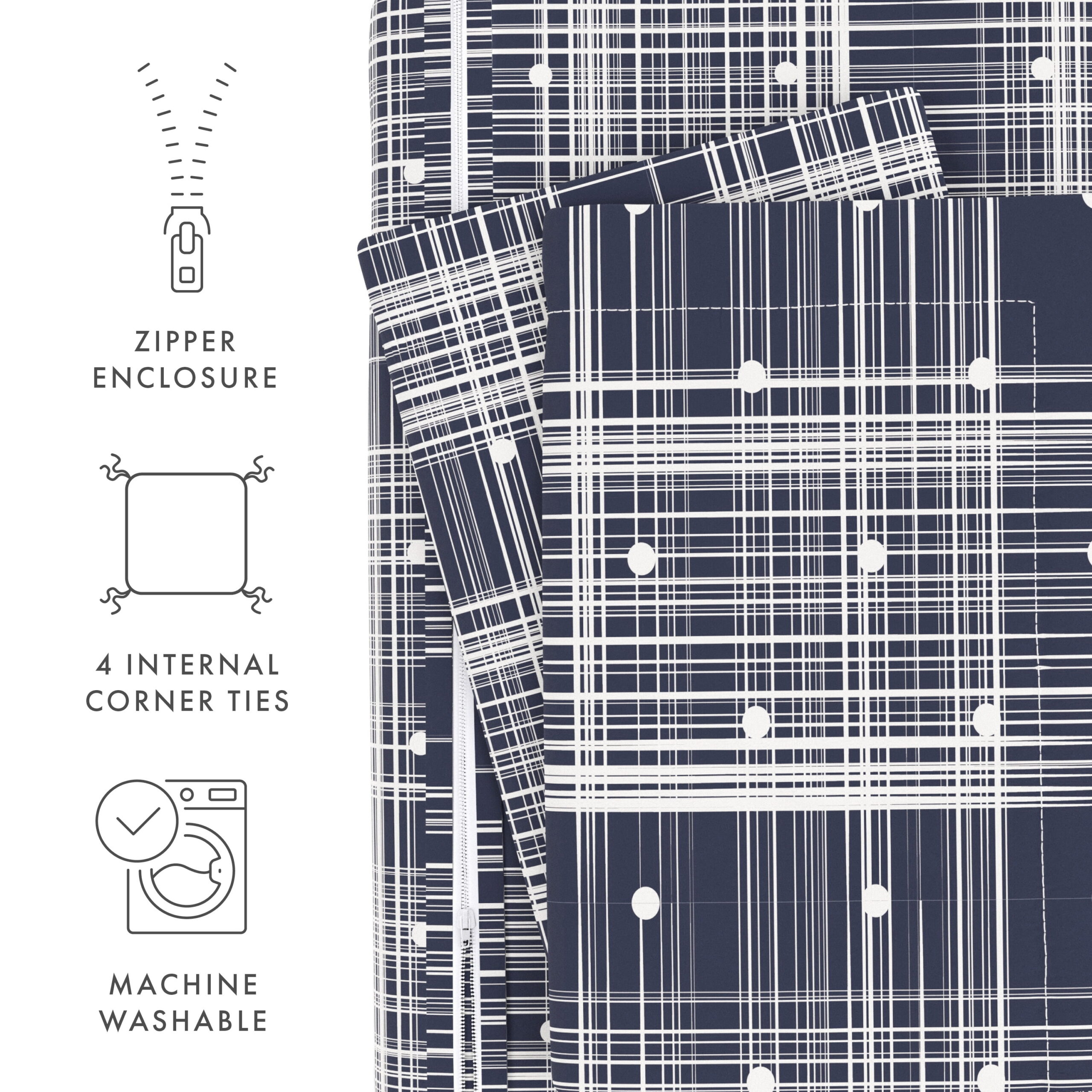 - Easy Assembly: Duvet corner ties and zippered closure make putting it on a breeze and prevents bunching