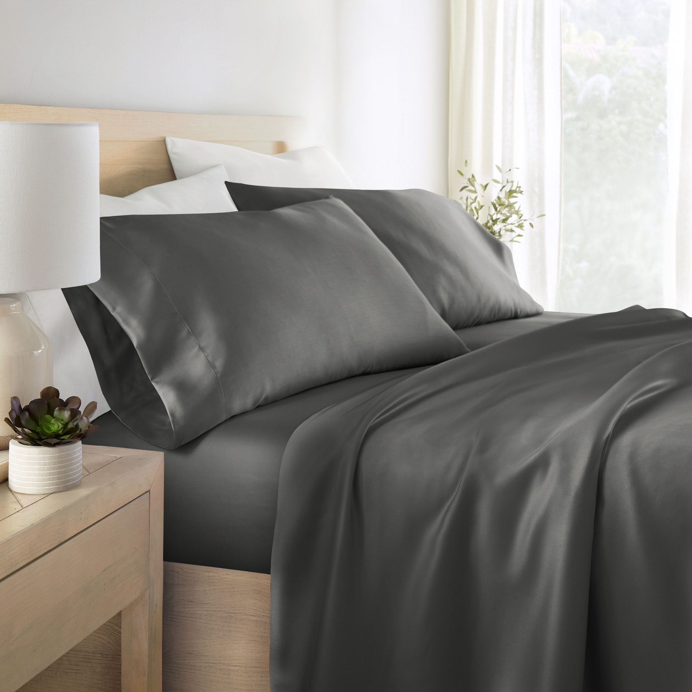 Noble Linens Rayon from Bamboo 4 Piece Luxury Bed Sheet Set, Gray, King