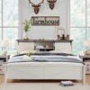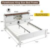 OKD Modern Farmhouse King Platform Bed with Bookcase Headboard Storage and Charging Station, No Box Spring Needed, Anitique White