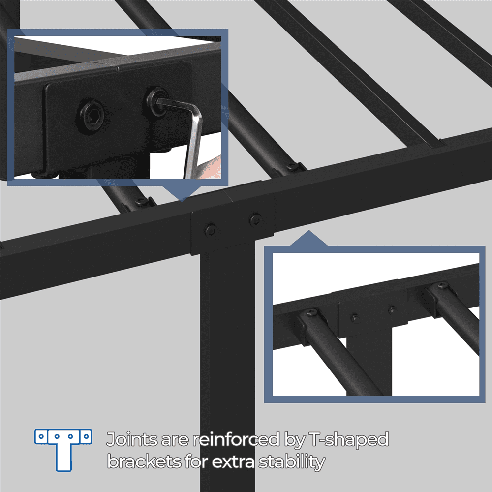 - A Dependable Foundation for Sound Sleep: This queen size bed frame is crafted from heavy duty powder-coated metal framework with 12 robust slats and multiple support legs, with a high load capacity up to 750 lb, offering sufficient firmness and stability free of wobbling worry.