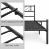 This queen size bed frame is crafted from heavy duty powder-coated metal framework with 12 robust slats and multiple support legs.The stylish head and footboard of this metal-framed bed are embellished with chic arrow patterns, bringing artistic temperament and character to your bedroom. Aesthetic but practical, they provide extra protection to your body and keep the covers or blankets in place.The 12-slat support system eliminates the need to purchase an additional box spring, so once you’ve found a suitable mattress, you’re ready to go, saving you money and time. The slats are spaced 5.3-5.7’’ apart. Suitable for adults.