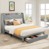 - Specifications: Color: Dark Gray; Slat Quantity:12; Materials: MDF, Particle Board, Poplar Wood, Foam, Velvet Fabric, Non-woven Fabric; Assembled Dimensions: 81″ L × 61.5″ W × (44-48)″ H; Maximum Weight Capacity: 800 lb