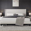 • Sturdy Wooden Construction: Interior wooden framework, 12 pieces of durable wood slats, and dense foam-padding border increase the comfort and durability of this king upholstered bed with wing design. With a maximum weight capacity of 800 lb.