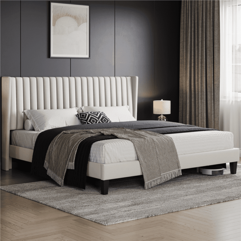 • Wing Side Design: Designed with a wing side on the wide upholstered headboard and skin-friendly linen fabric, the king upholstered platform bed can be a must-have in any restful retreat (No Box Spring Needed).