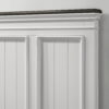 - 5-Step Process Weathered White Finish With Preserving Lacquer Top Coat, Dark Gray Finished Top Panel.