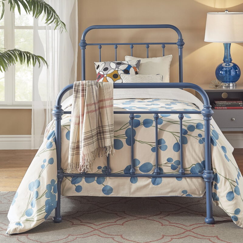 Weston Home Nottingham Metal Twin Bed, Blue Steel