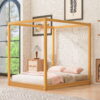 - [Solid Construction]: This canopy platform bed is made from solid pine wood and MDF, which will stand the test of time to serve your family for many years. Low bed design will be easy to enter, while the slats are not touch the ground, keeping the air circulation.