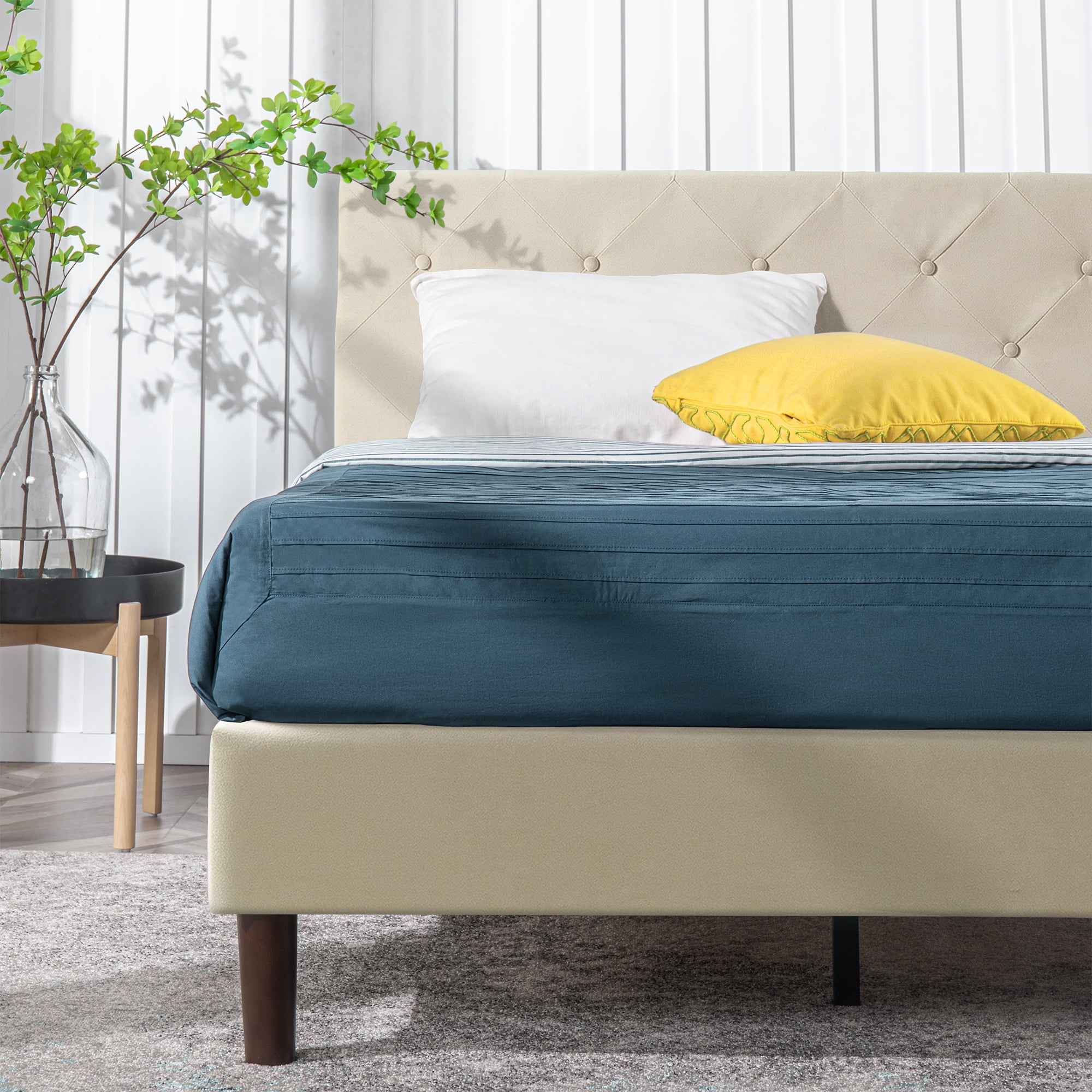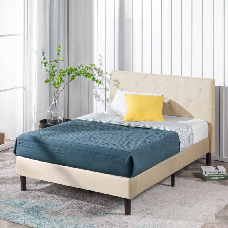 - Zinus Shalini 41″ Upholstered Platform Bed Frame, Beige, Queen