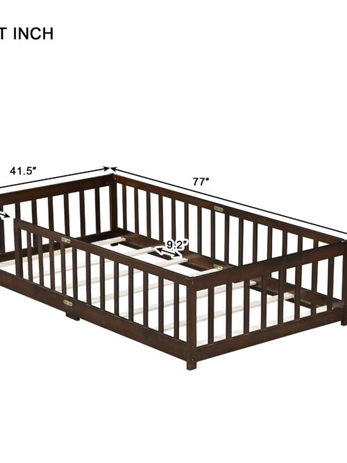 • Alvantor Twin Size Montessori Floor Bed for Kids with Rails, Wood Toddler Bed Frame,Espresso