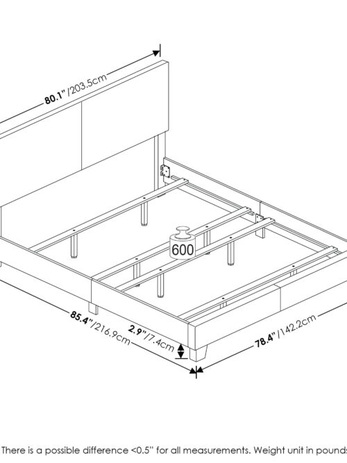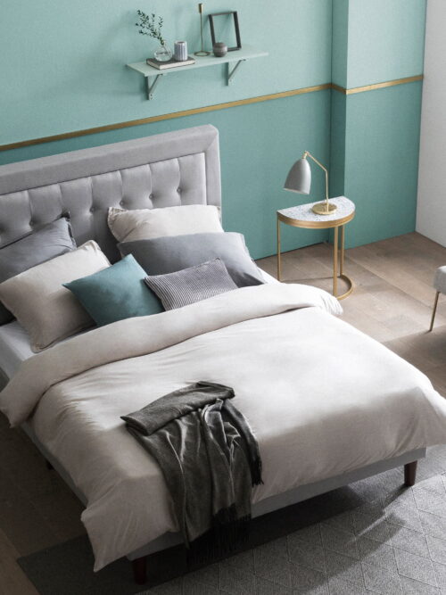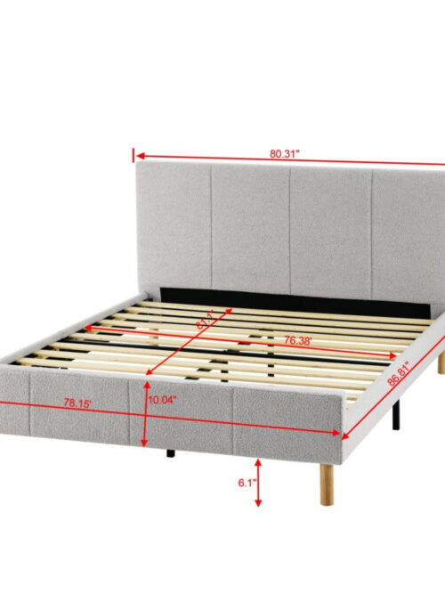 • Furinno Pessac Fabric Upholstered Bed Frame with Wooden Slat Support, King, Glacier