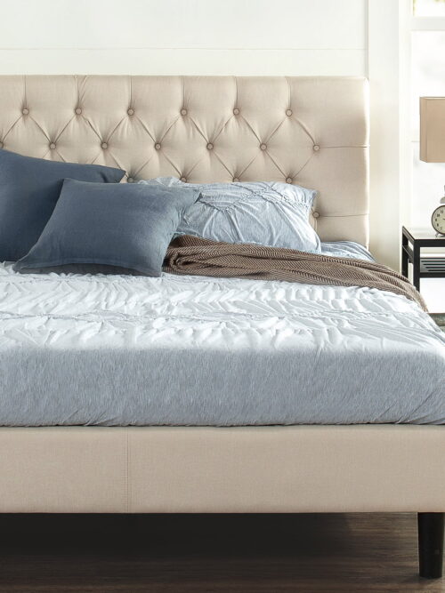 Zinus Misty 42″ Upholstered Platform Bed Frame, Taupe, King