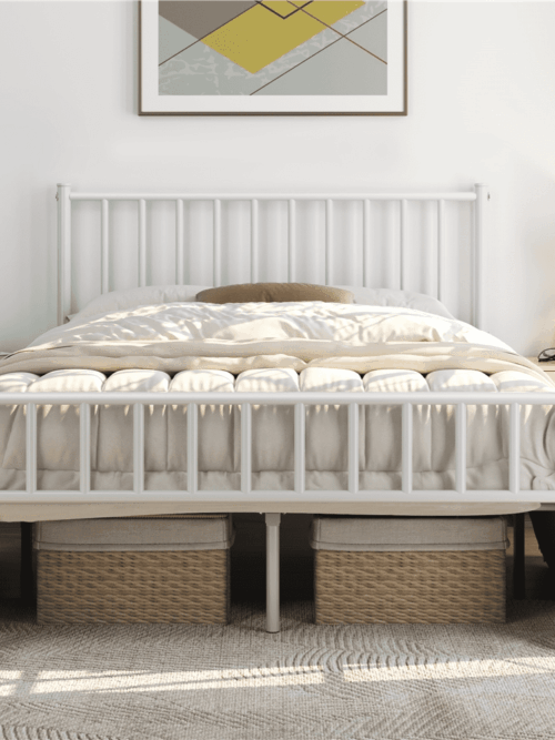 • Renwick Metal Platform Full Bed with Spindle Headboard and Footboard for Adult, White