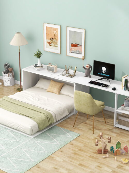 • Euroco Queen Size Murphy Bed with Movable Desk, White