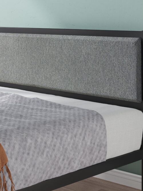 Zinus Korey 38″ Metal Platform Bed with Upholstered Headboard, King