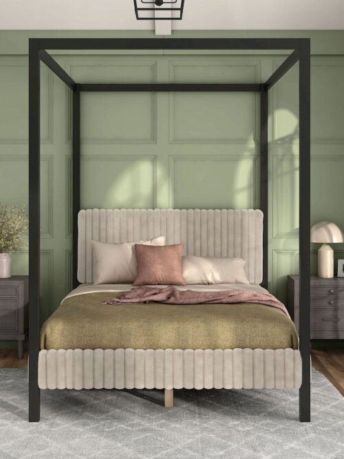 • Furniture of America Elra Adult Queen Wood Mattress Ready Bed with Canopy Frame, Light Brown