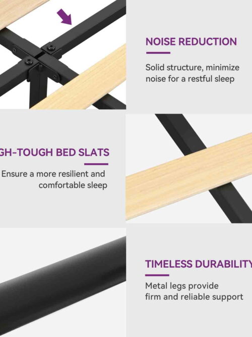 • Uforic Farmhouse Queen Metal Platform Bed Frame with Headboard & Soundproof Cotton, Black