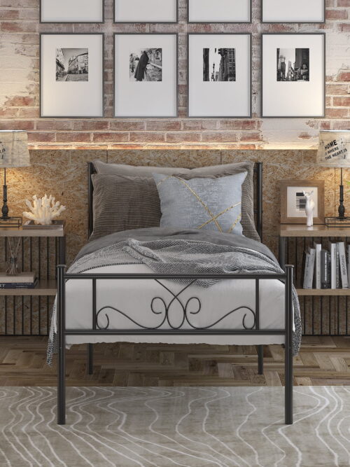 • Yoneston Twin Size Metal Platform Bed Frame with Headboard for Kids and Teens Bedroom Furniture, Black
