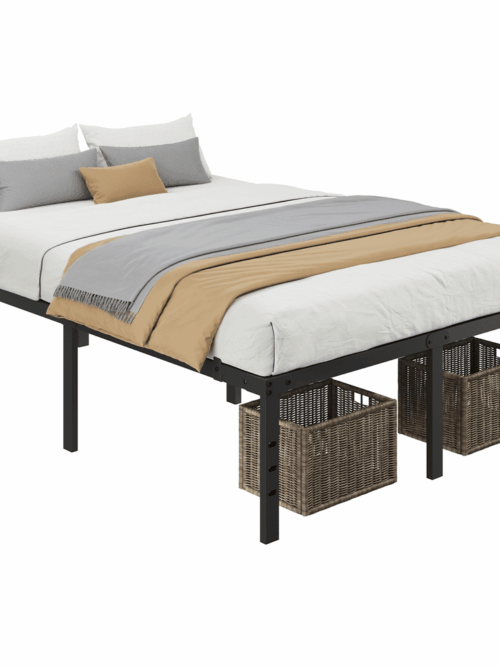 • Alden Design Queen Size 18" Platform Bed Frame, No Box Spring Needed, Adult, Black