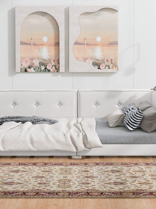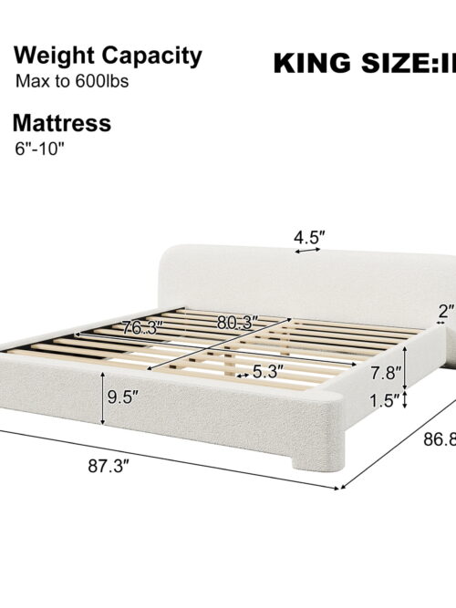• Esme Minimalist King Size Boucle Upholstered Platform Bed with Solid Wood Frame, White