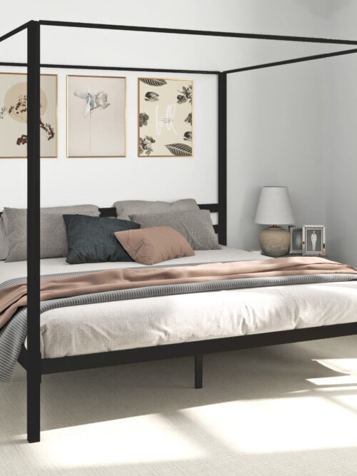 Dextrus Metal Canopy Bed Frame 14″ Platform with Headboard Strong, Black, King Size Adult,No Box Spring Required