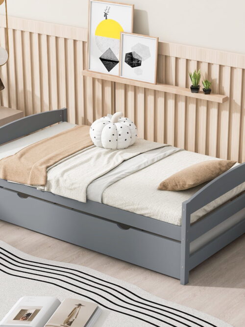 EUROCO Twin Size Platform Bed Frame with Trundle, Low Profile Easy Assembly Daybed for Kids Teens Bedroom, Gray