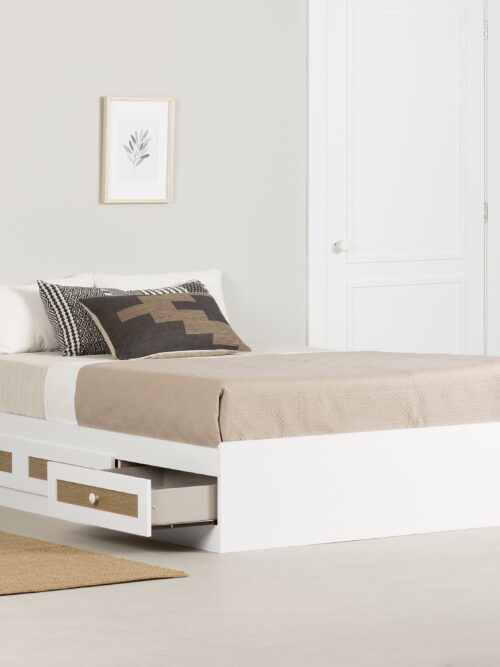 South Shore Bloom, Bohemian Harmony Twin Mates Bed with 3 Drawers, White and Faux Printed Rattan