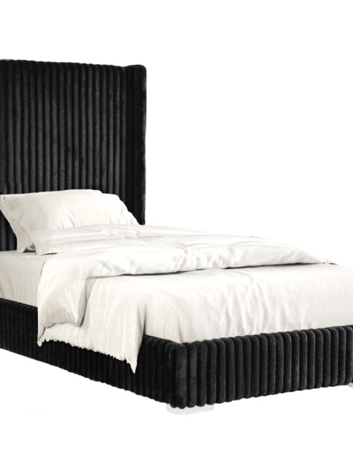• Furniture of America Cafein Kids Twin Extra Tall Tufted Fabric Wingback Mattress Ready Bed, Black