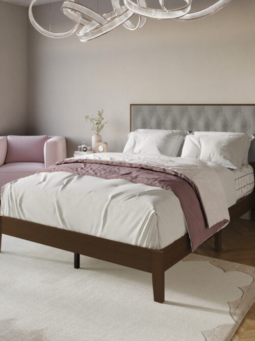 • Baxton Studio Fleur Mid-Century Platform Bed, Queen, Walnut Brown