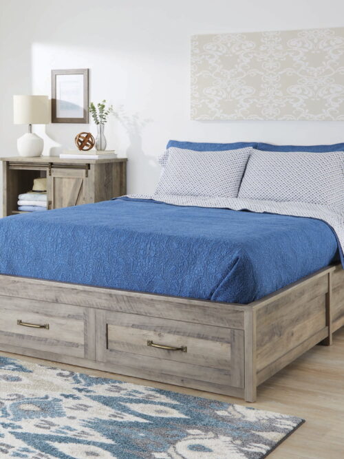 • Better Homes & Gardens Modern Farmhouse Queen Platform Bed with Headboard and Storage, Rustic Gray Finish