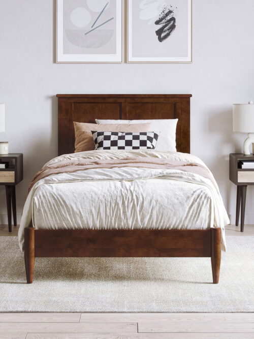 • AFI Charlotte Twin-XL Solid Wood Low Profile Platform Bed with Matching Footboard, Walnut