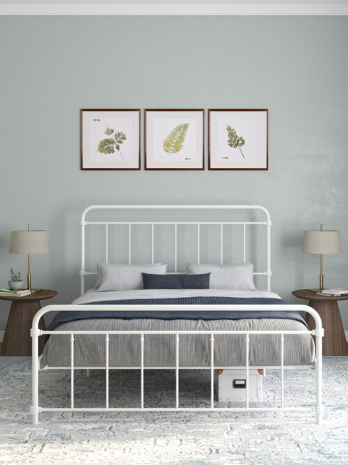 • DHP Wallace Metal Platform Bed Frame with Headboard, Queen, White