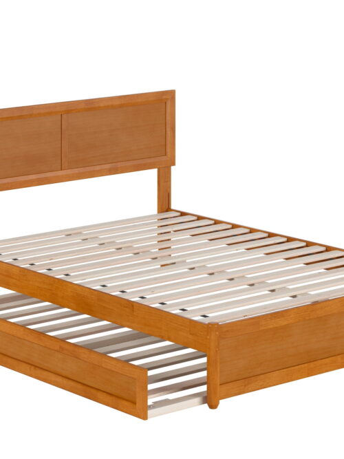 • AFI Lylah Full Wood Platform Bed with Panel Footboard and Twin Trundle, Light Toffee