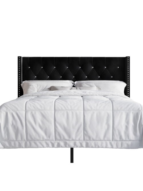 • Castle Place Button Tufted Wingback Velvet Upholstered Bed with 2 Nightstands, Black, Full