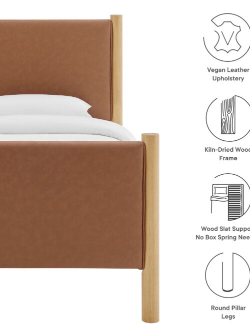 • Modway Maven Twin Size Vegan Leather Upholstered Platform Bed in Tan Oak