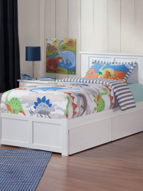 • AFI Madison Twin Solid Wood Platform Bed with Footboard & Storage Drawers, White