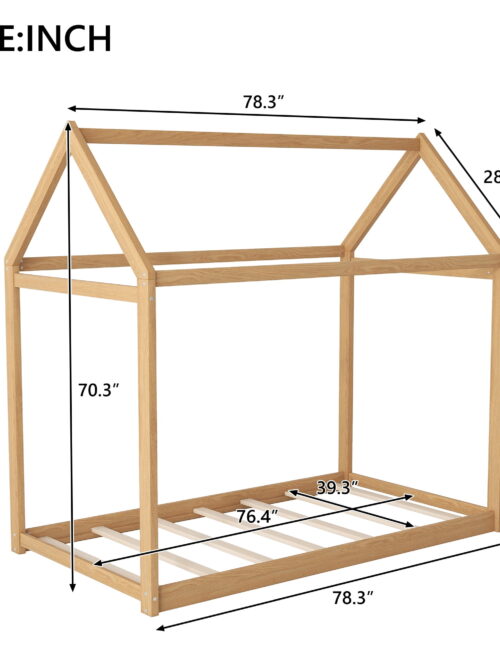 • Euroco Twin Wood House Bed Frame with Roof, Wood