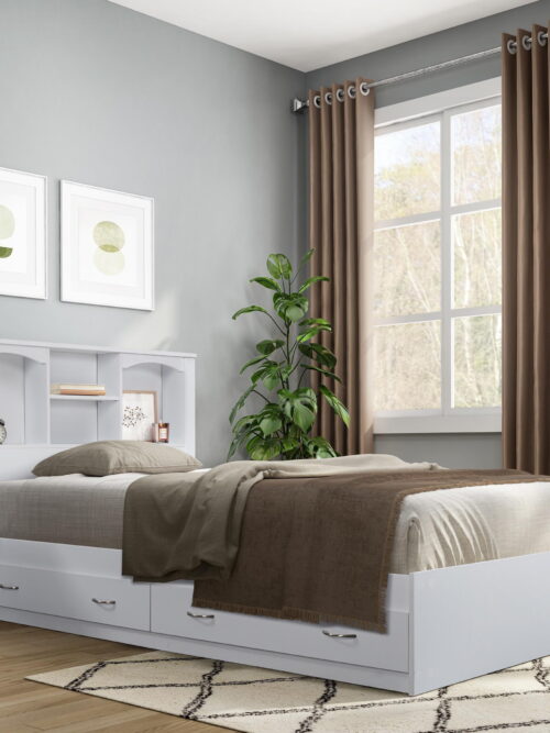 South Shore Basics 54″ Full Size Platform Bed with Molding, White