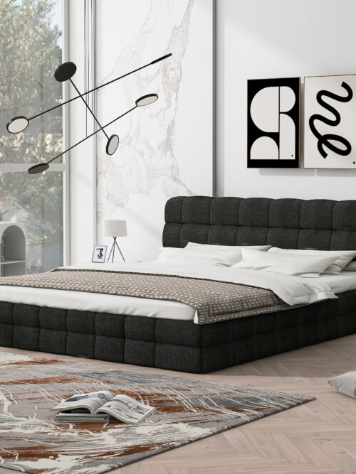 • Euroco Upholstered Queen Size Platform Bed with Tuft Headboard, Black