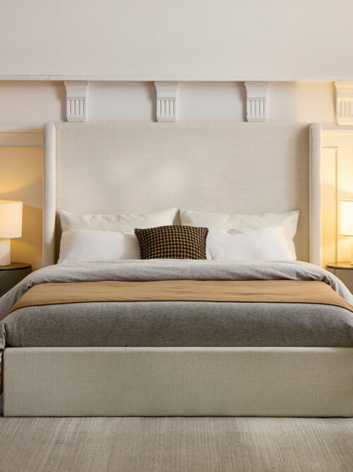 • Miniyam King Size Wingback Bed with 54" High Upholstered Headboard for Adult, Ivory